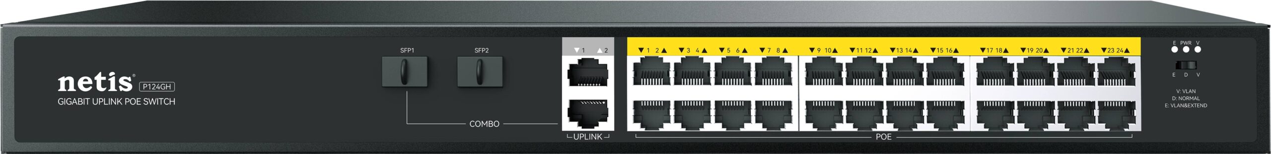Netis Switch POE P124GH, 24 Puertos POE (100 Mbps) y 4 Puertos Uplink (1000 Mbps), 360W, Watch Dog, Plug & Play, 250 Mts de Alcance, No Administrable