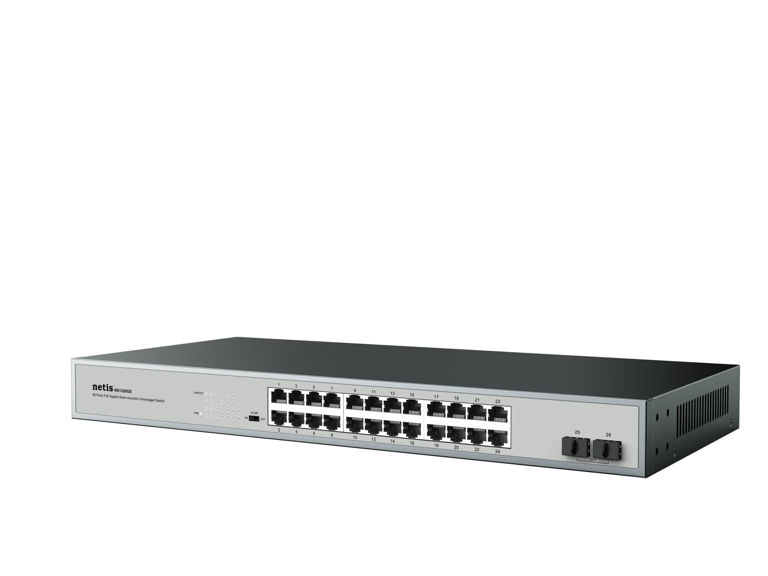 Switch NETIS modelo ST3126GS, 26 Puertos Gigabit Ethernet Switch + 2 Puertos SFP Gigabit, Montable en rack, No administrable